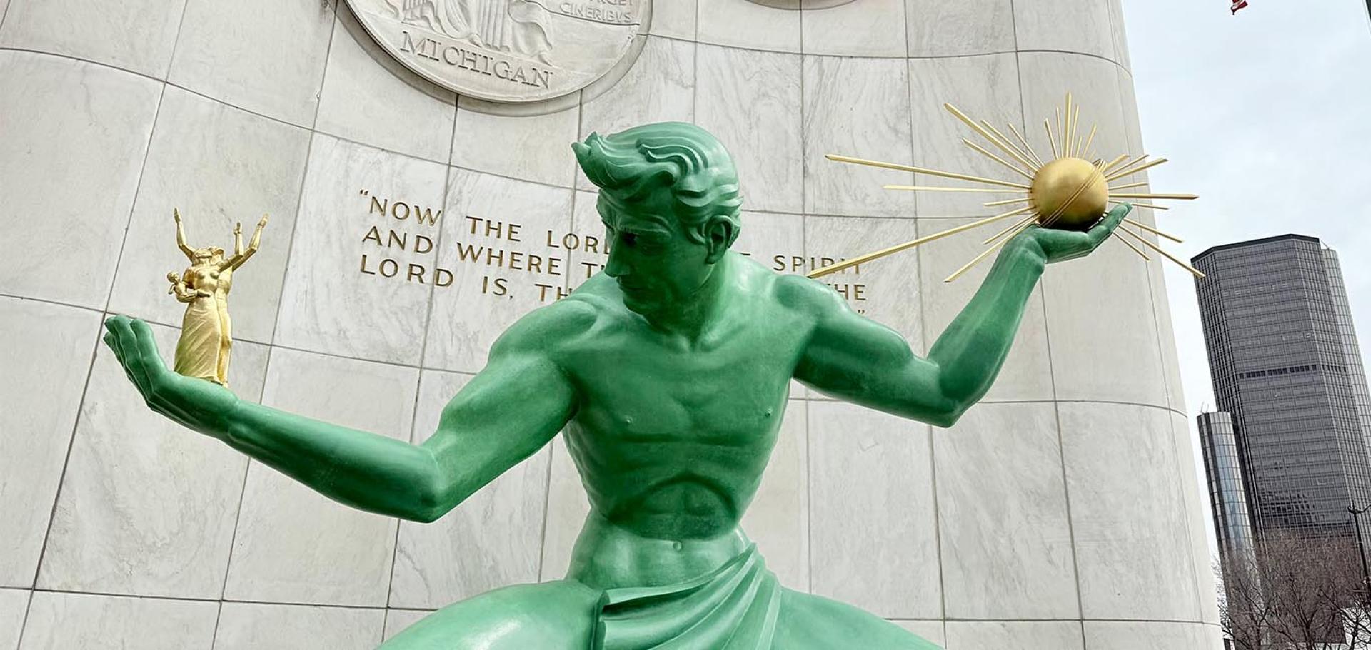 The meeting spot is in front of the Spirit of Detroit Statue at 2 Woodward Ave, Detroit, MI 48226. Your guide will be there with an orange umbrella and a big smile!